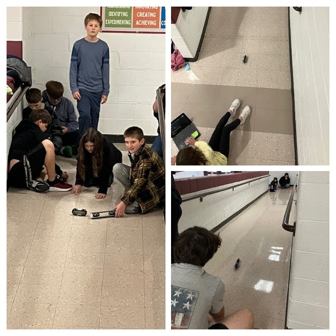They have planned and built their irrigation devices, now it was time to take their designs to the "cornfield" with the Finch Robot. The students are learning to measure and code the robot to move thoughout the field without running over the corn and identifying the areas that need irrigating.