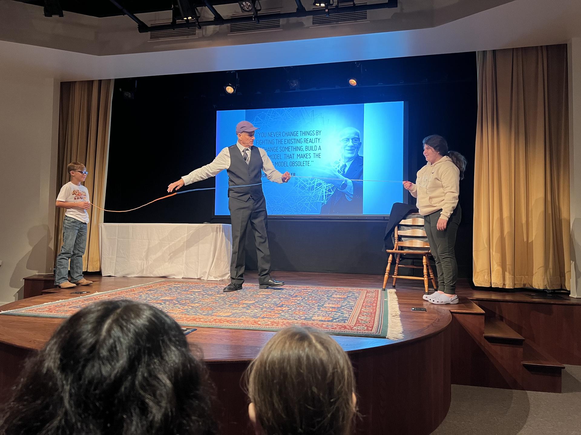 The 5th grade classes took a dive into the world of invention with a visit to the Storytelling Center, where they met a storyteller’s tales about the incredible inventor Buckminster Fuller! Students learned how Fuller used his love of triangles to design strong, lightweight geodesic domes. "Even playground equipment uses his design shapes," according to the 5th grade students.