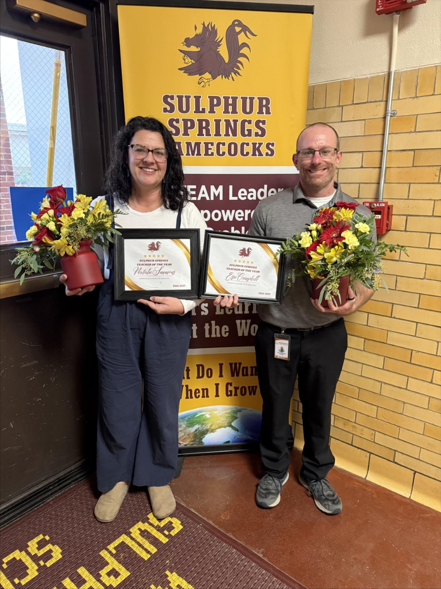 This week, we were also proud to recognize our Sulphur Springs Teachers of the Year. Mrs. Natalie Simmons was named Teacher of the Year for grades PreK–4, and Mr. Eric Campbell was named Teacher of the Year for grades 5–8. Both of these outstanding educators are truly special, and this recognition is well deserved.