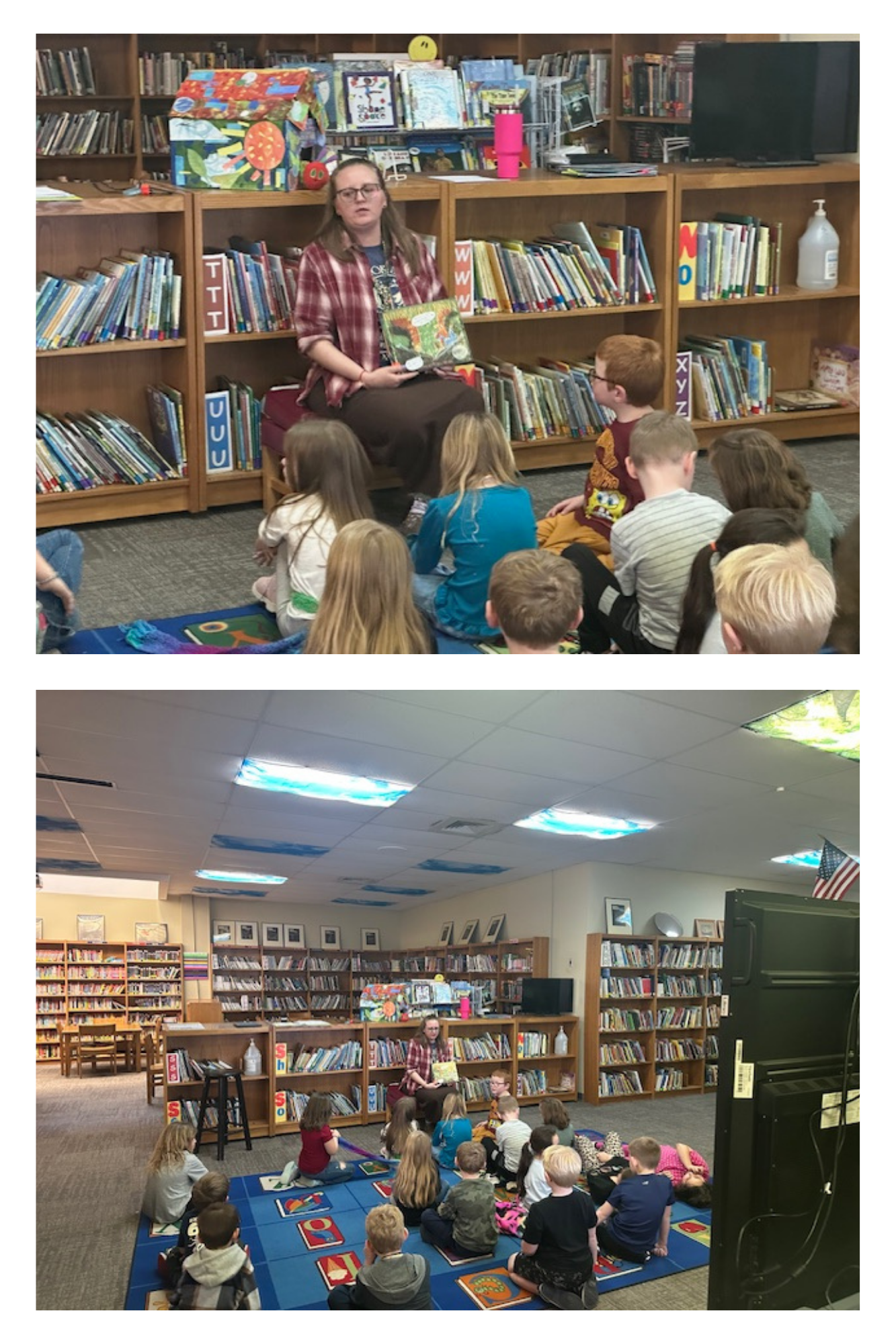 | Learning Goals & Big Feelings (PreK–3) During library class, grades PreK–3 classes explored New Year goals and managing big emotions with Ms. Hale. We read the books Interrupting Chicken by David Ezra Stein and Bad Kitty Does NOT Like Snow by Nick Bruel.
