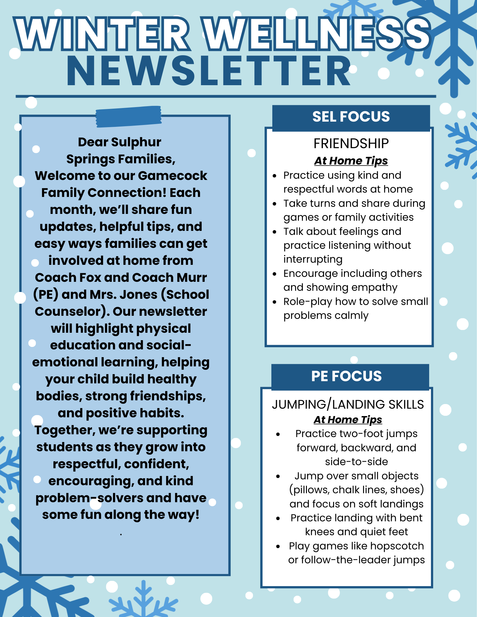 Several families also took advantage of our Family Connection Day this week, and we appreciate those who were able to attend. If you were not able to join us, our next Family Connection Day will be held on January 27, and we would love to see you stop by! Please email me at mcinturffk@wcde.org for a time during the day or after school that works for you.