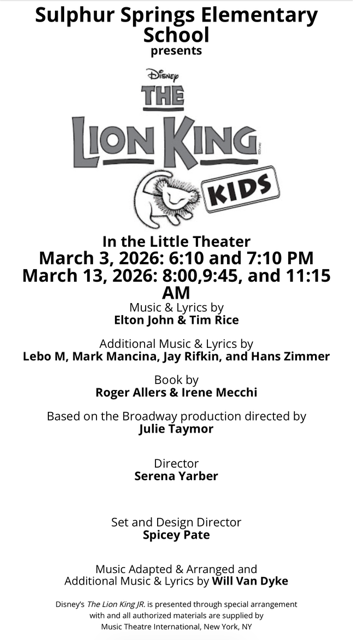 - March 13: EPIC Celebration Day and The Lion King musical presented to the whole school