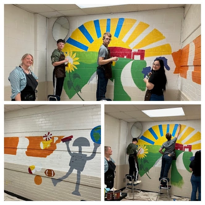 Middle school related-arts students are bringing an eye-catching mural to life on the stairwell walls leading to the upstairs classes! Guided by art teacher Mrs. Pate, students designed a vibrant piece inspired by Tennessee’s signature landmarks and our own Sulphur Springs Elementary. They also incorporated images that represent the school’s programs and spirit.